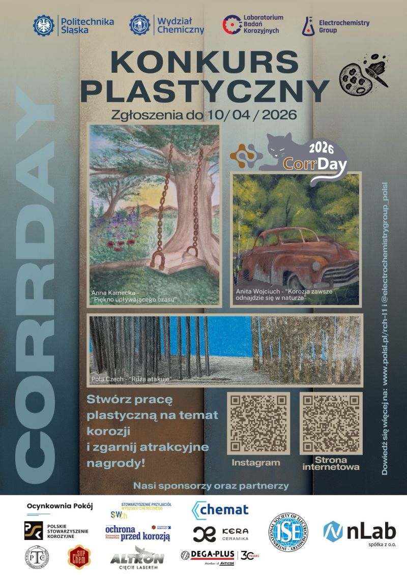Laboratorium Badań Korozyjnych Politechniki Śląskiej, w ramach CorrDay 2026 ogłosiło konkurs na pracę plastyczną o tematyce korozji „Rdzą malowane”.